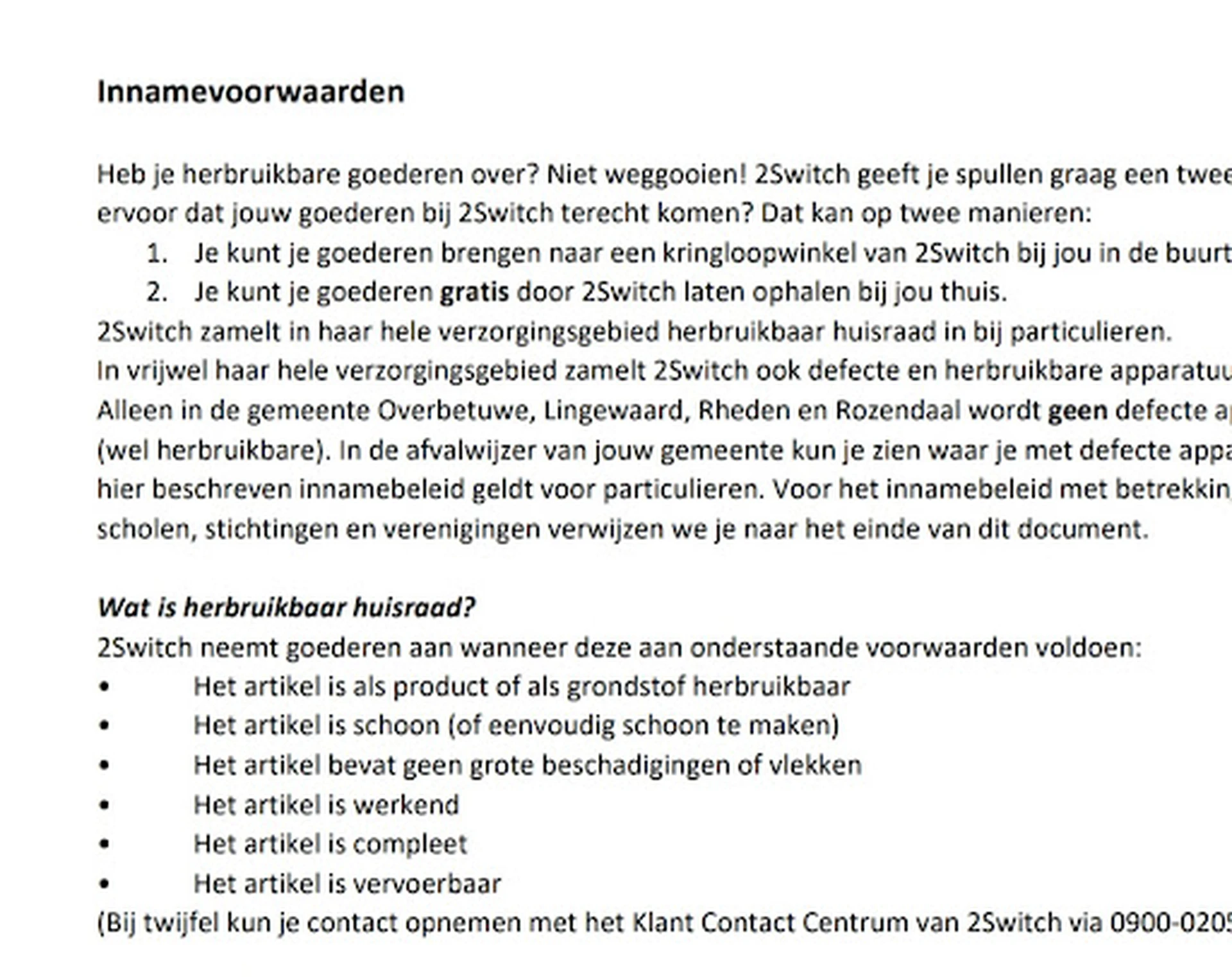Heb je kleding die je niet meer draagt? Bij 2Switch kun je je afgedankte kledingstukken inleveren zodat ze een tweede leven krijgen bij een nieuwe eigenaar. Dit draagt bij aan duurzaam hergebruik en geeft je kleding nog jaren extra gebruikstijd. Voor grote partijen kun je het beste even bellen.