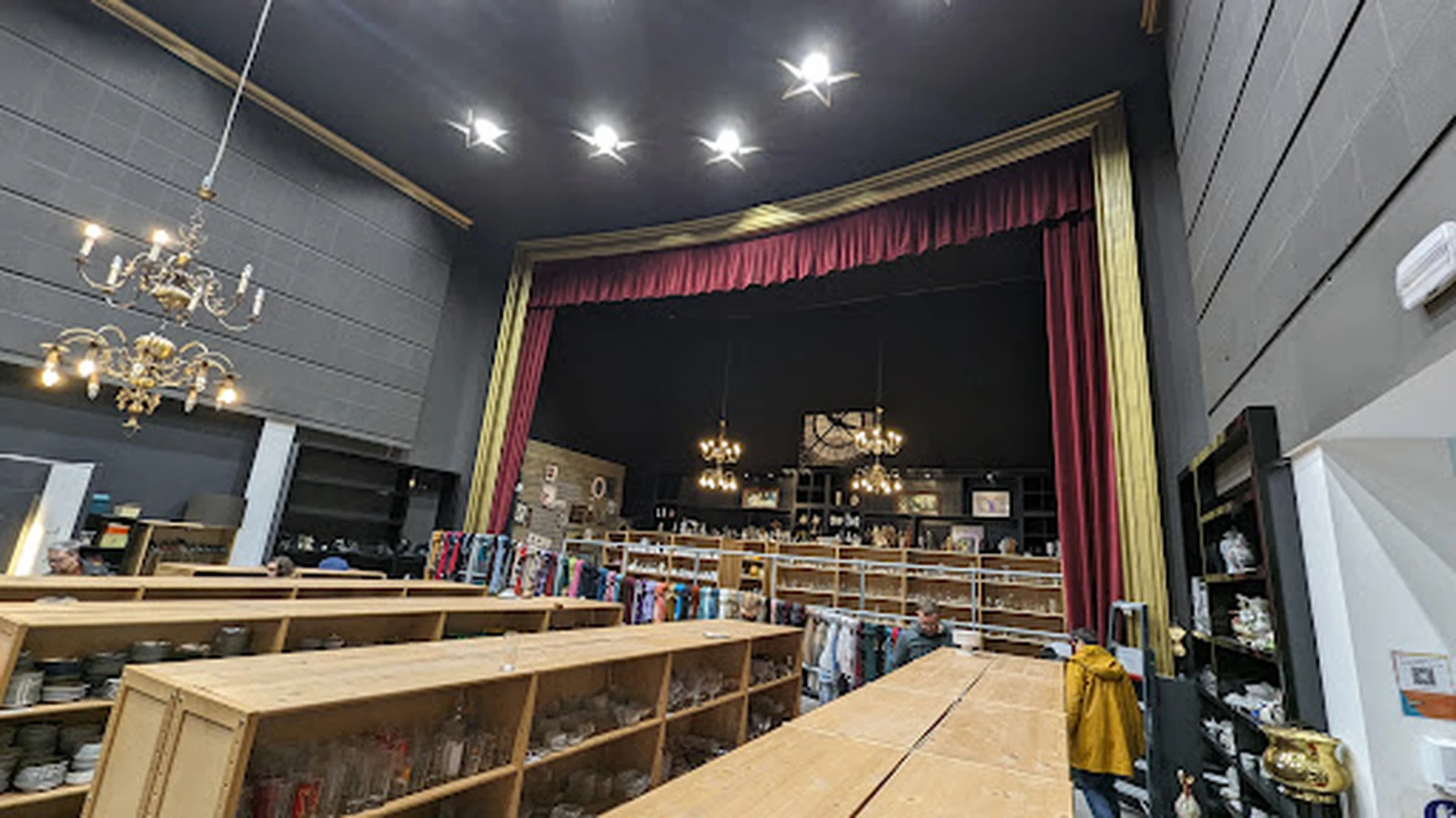 Prachtig interieur: oude theater- en cinemazaal. Mooi en divers aanbod. Ruime parking voor 60 wagens aan de kringwinkel, toegang via kerkplein.