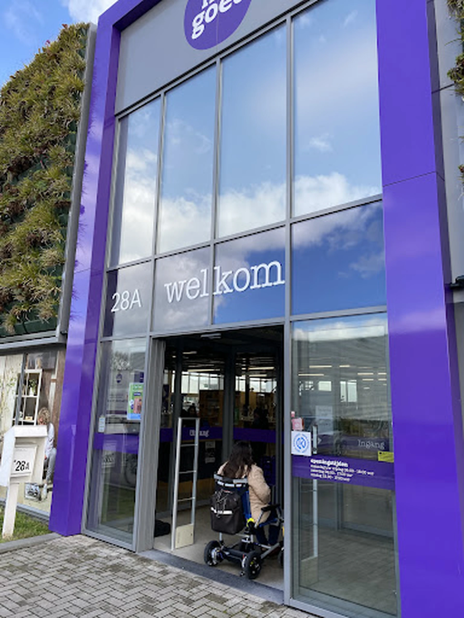 Mooie, grote en schone winkel. Het woord ‘kringloop’ komt niet echt op bij mij. Er staan natuurlijk wel gebruikte spullen, en dat zie je ook aan de staat waarin deze verkeren. Maar om daar dan de oorspronkelijke winkelprijs ( of nog meer) voor te berekenen mist elke logica. Gelukkig is niet alles ‘overpriced’. Als je hier gaat winkelen kom je best wel veel mooie spullen tegen. Er is (bijna) aan alles gedacht: ruime paden, ideaal voor rolstoelers. In-en uitgang zonder drempels, en automatische deuren. Nergens obstakels. Wil je naar de bovenverdieping dan gaat een medewerker voor je regelen dat je met de rolstoel de lift in kan. Op die bovenverdieping is alles weer netjes gepresenteerd. Hier staan o.a. boeken en muziek. Beneden is een leuke koffiecorner, maar je kunt hier ook een lichte lunch gebruiken (tosti, kroket, koek, gebakje). Er is ook een toilet, en die zou dan ‘universeel’ zijn, en volgens de sticker op de deur ook geschikt voor mindervaliden. Dat laatste is deels waar: weliswaar is het ruim genoeg voor een rolstoeler, maar de rest van de aanpassingen is men vergeten? Geen beugels, geen schuifdeur, geen verhoogde pot, geen onderrijdbare wastafel. Er zit wel een noodkoord, maar of dat werkt durf ik niet te zeggen. De locatie, zo heb ik me laten vertellen, is pas 2 jaar geleden in gebruik genomen. En je ziet dat er ook wel vanaf. Als er nu nog iets gedaan zou worden aan de aanpassingen in het toilet, en er zou tenminste 1 gehandicapteparkeerplek worden ingericht, dan verdient dit filiaal van Het Goed wel 5 sterren.
