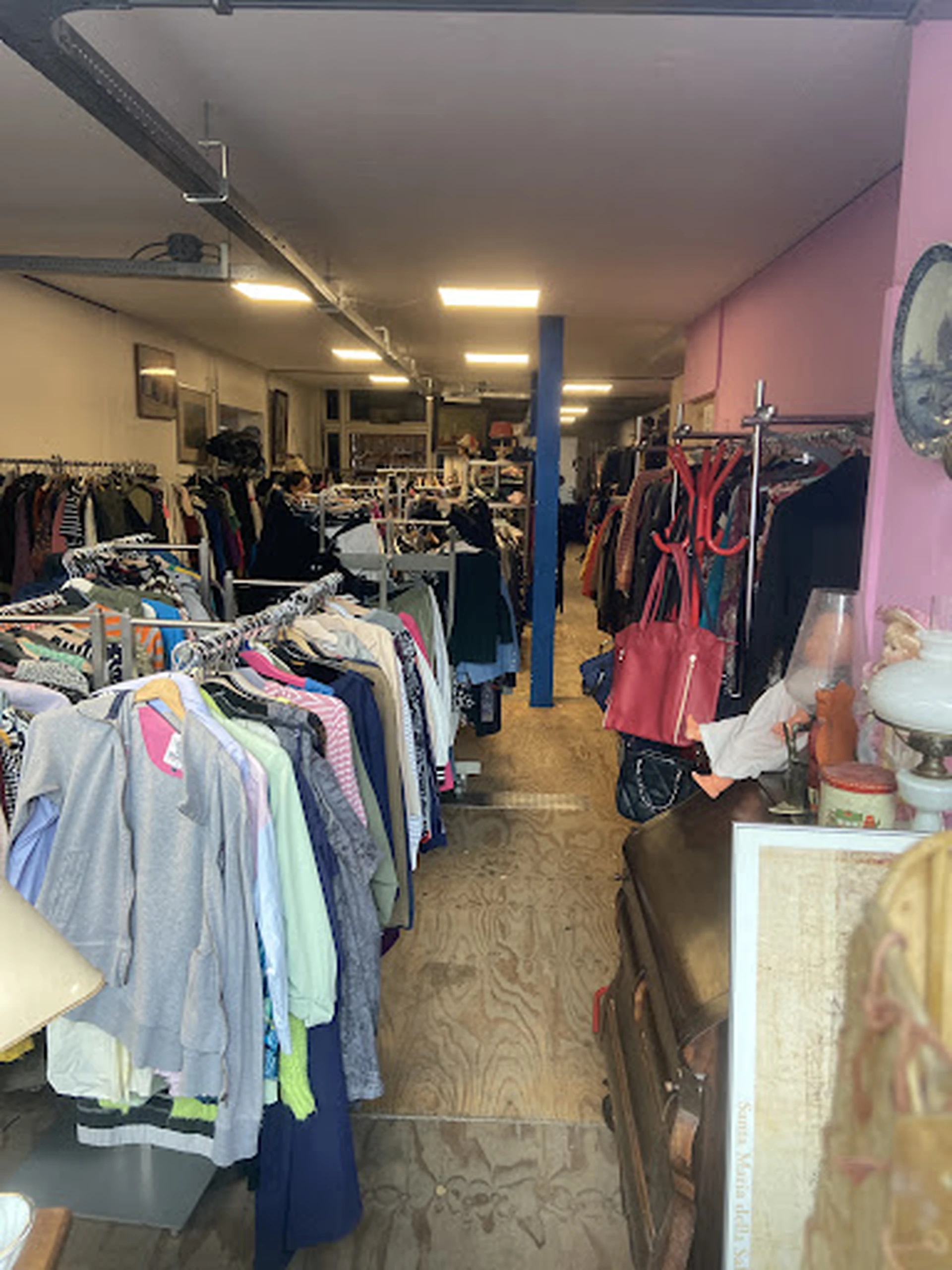 een winkel vol met hen. Als u op zoek bent naar kleding, moet u hier zeker even langskomen. Er kwam een mooie schoen voorbij. Wie op zoek is naar beelden en ornamenten, heeft geluk. Over het algemeen is er een kans dat u het tweedehands materiaal vindt dat u zoekt. Vergeet niet om hier even langs te komen. Er zitten veel materialen in, het is groot en de binnenkant zit vol.