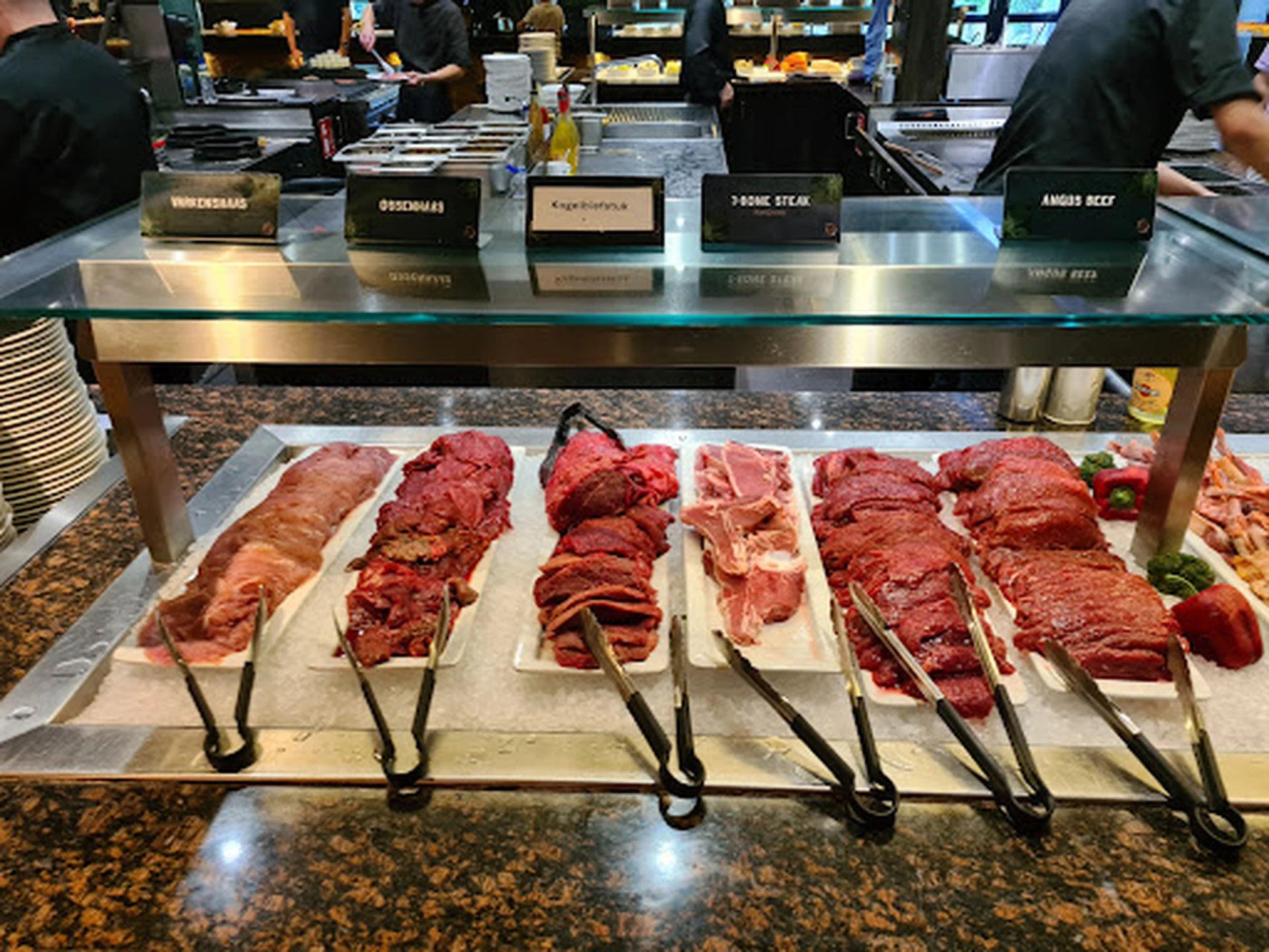 Groot maar oogt niet massaal, lekker gegeten, voor iedereen iets. Zelf vlees of vis pakken om te laten bakken op plaat of bbq, geen lange rij. Sushi carrousel (al vond ik lastig te zien wat wat was ondanks legenda), flesjes drinken zelf pakken. Heerlijk toetjes buffet, lekkere warme wafels. Borden duurde wel even voor deze opgehaald worden door drukte waarschijnlijk. Voor kids ook veel te doen, speelruimte en sminck gezien. Parkeren gratis voor de deur.