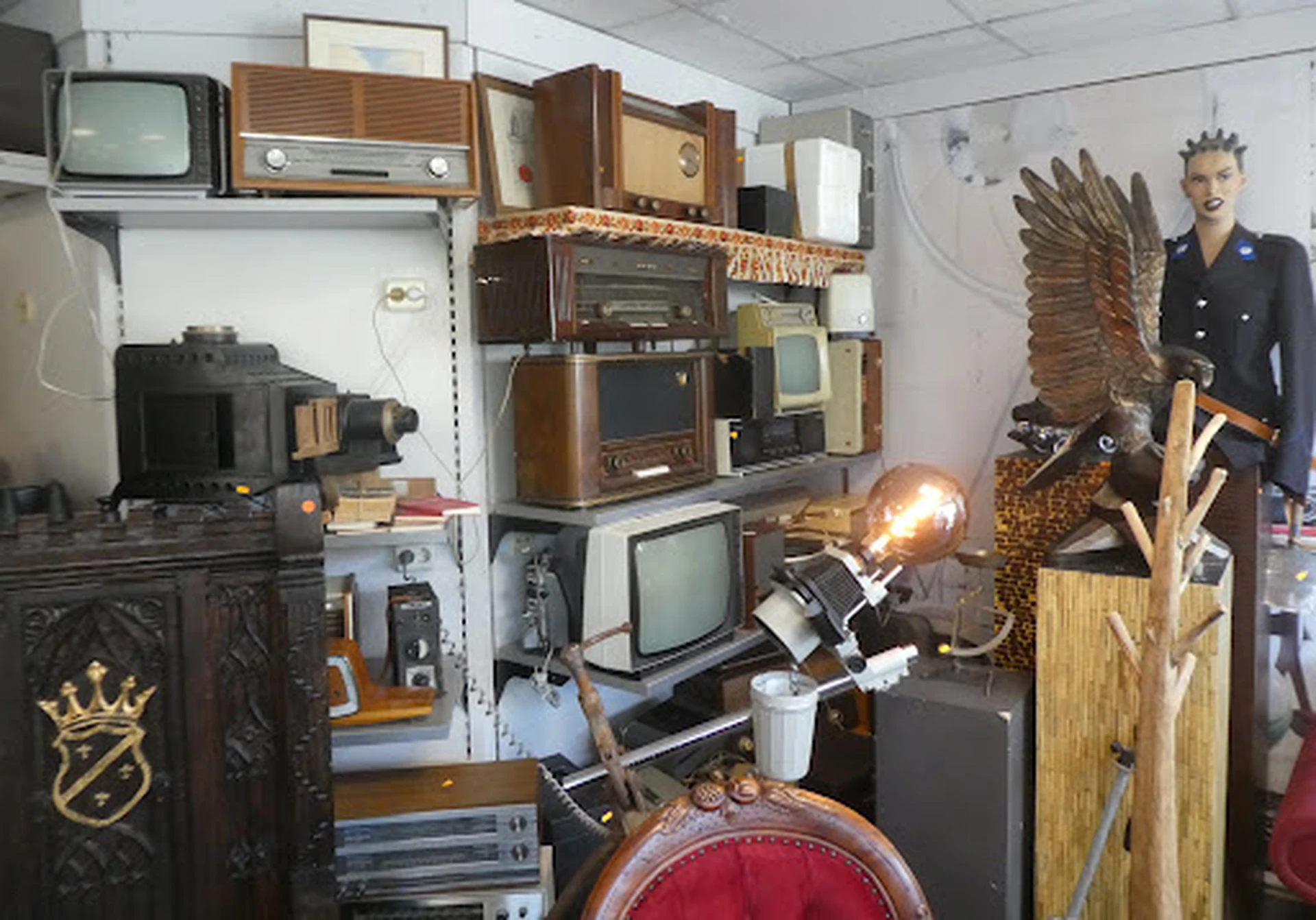 Gezellige winkel die lekker vol staat met oude spullen, met klassieke muziek op de achtergrond. Veel bijzondere vintage spullen zijn hier te koop. Ook mooie oude radios.