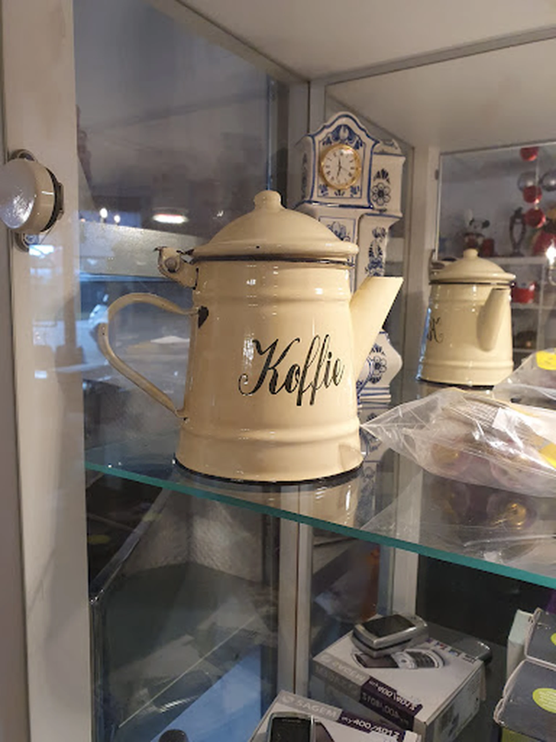 Bij binnenkomst lijkt het een kleine kringloop maar hij loopt helemaal door naar achteren en heeft ook nog een boven. Slechts 3 parkeerplaatsen voor de deur