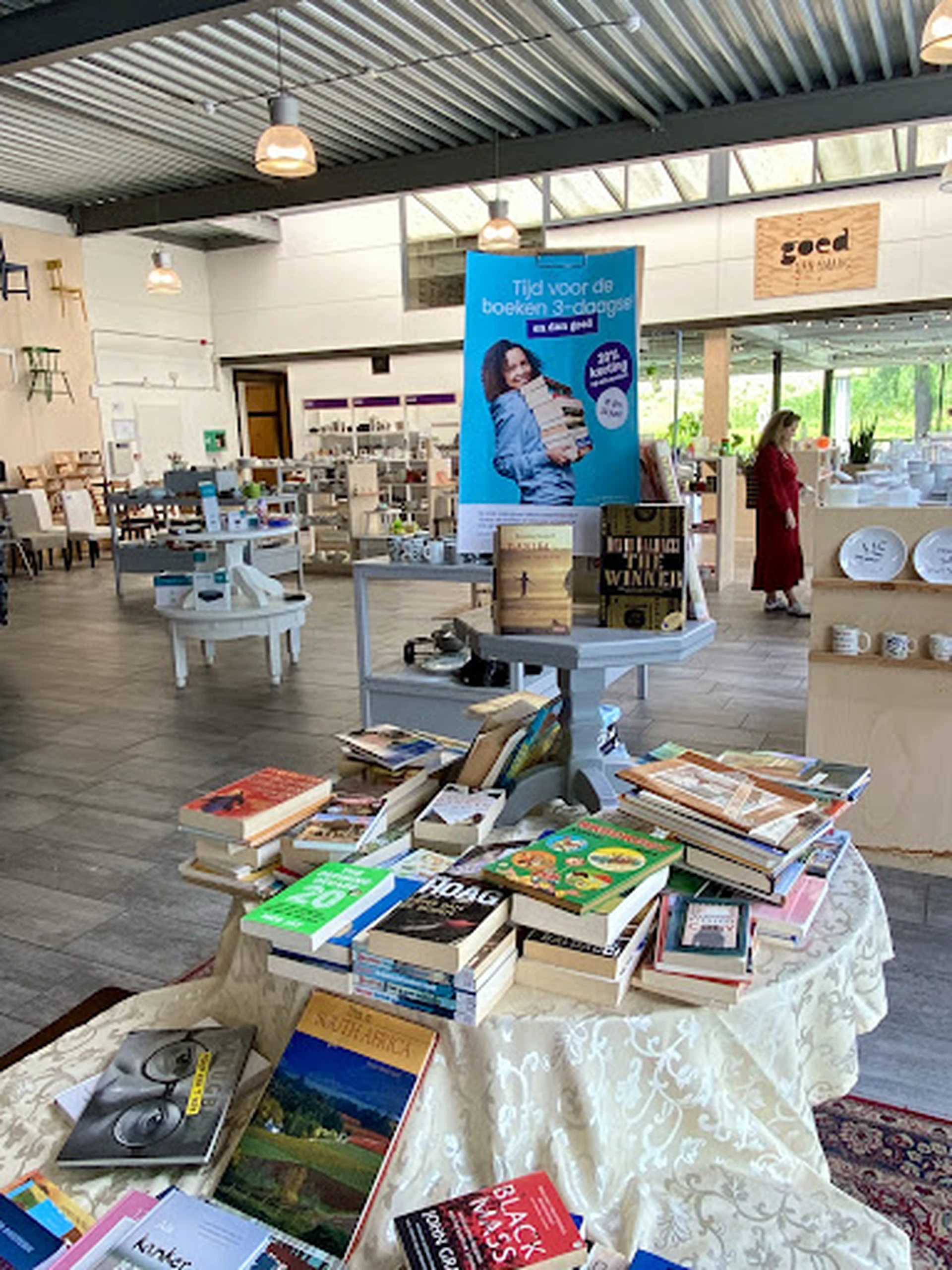 Deze winkel is achteruit gegaan sinds een paar jaar Veel kapotte items, kleding dat belachelijk geprijst is en vieze smoezelige banken en stoffen stoelen De koffiehoek is leuk en je kunt er nu een high tea geven Er werken een paar enorme chagrijnige mensen Ik vind er wel vaak wat maar nooit kleding, gewoon te duur! En daar kan de eigenaar vh Goed wel weer aankomen met allerlei redenen voor de prijzen maar het feit is gewoon dat deze Het Goed te duur is. Andere filialen zijn stukken goedkoper Wat ook strontvervelend is dat bezoekers hun auto parkeren pal voor de ramen en de invalide parkeerplaatsen amper te bereiken zijn Tip!!! Zet er wat neer of kalk op de grond NP Heel simpel Anders rondbazuinen door de winkel dat ze een wielklem krijgen Best leuk om naartoe te gaan maar geen topper