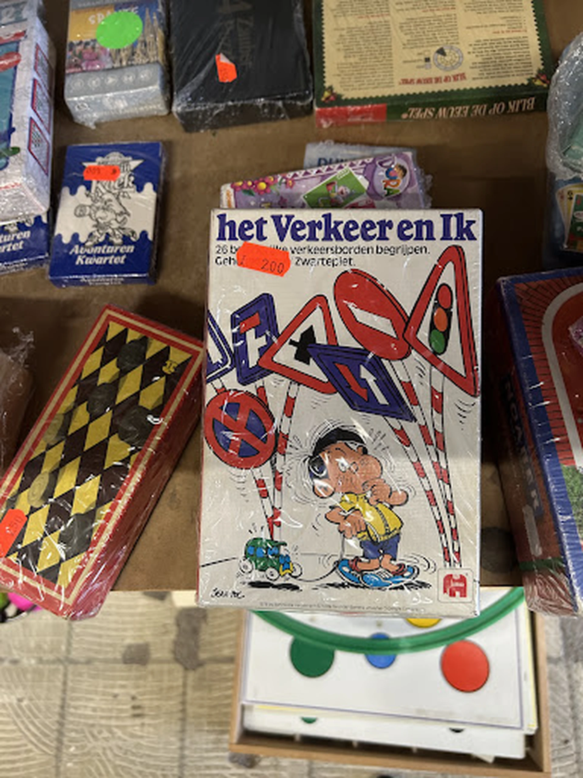 Betalen met kaart of contant, goede selectie aan muziekvinyls, cd's en bordspellen, evenals kleding en schoenen