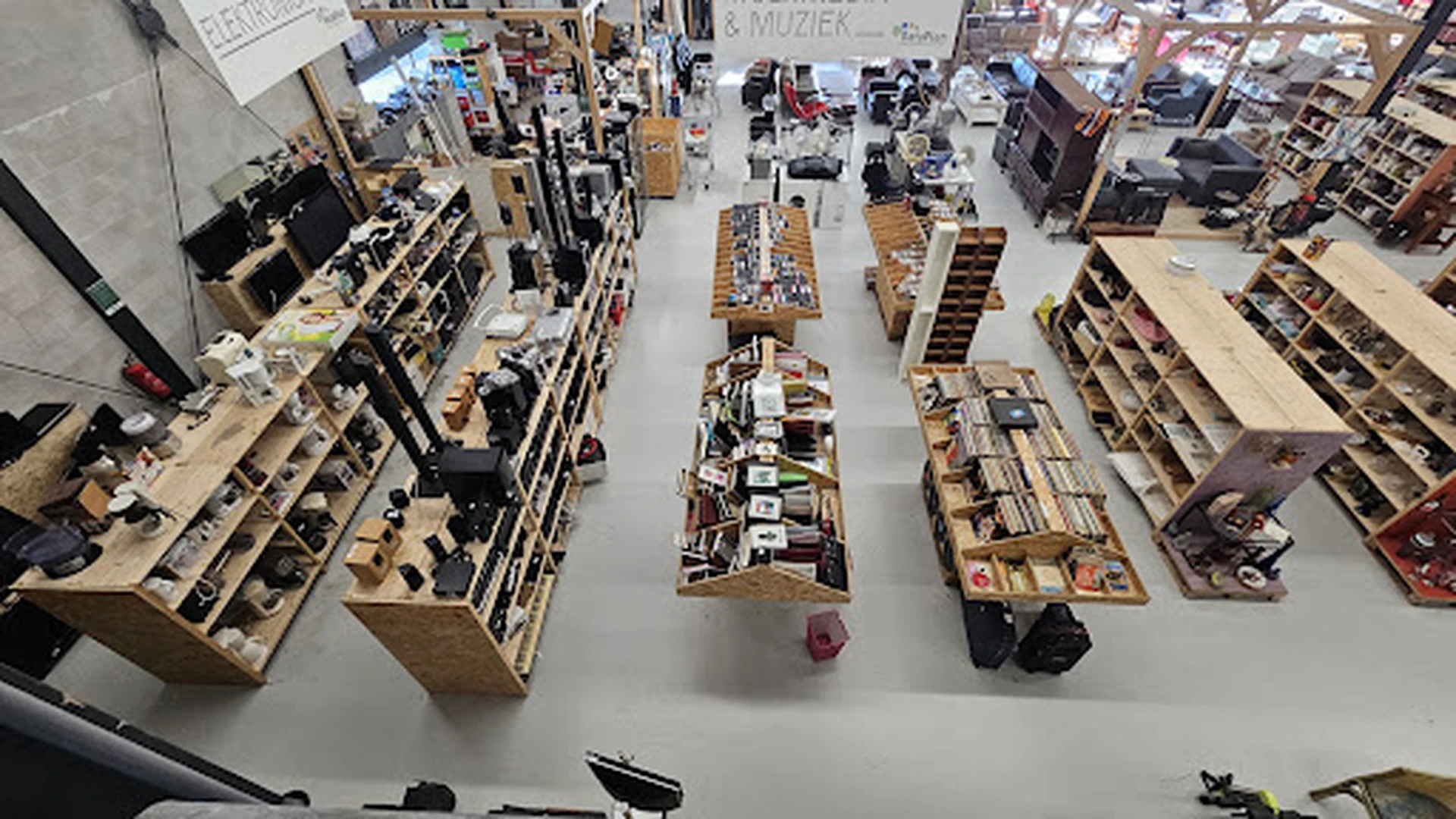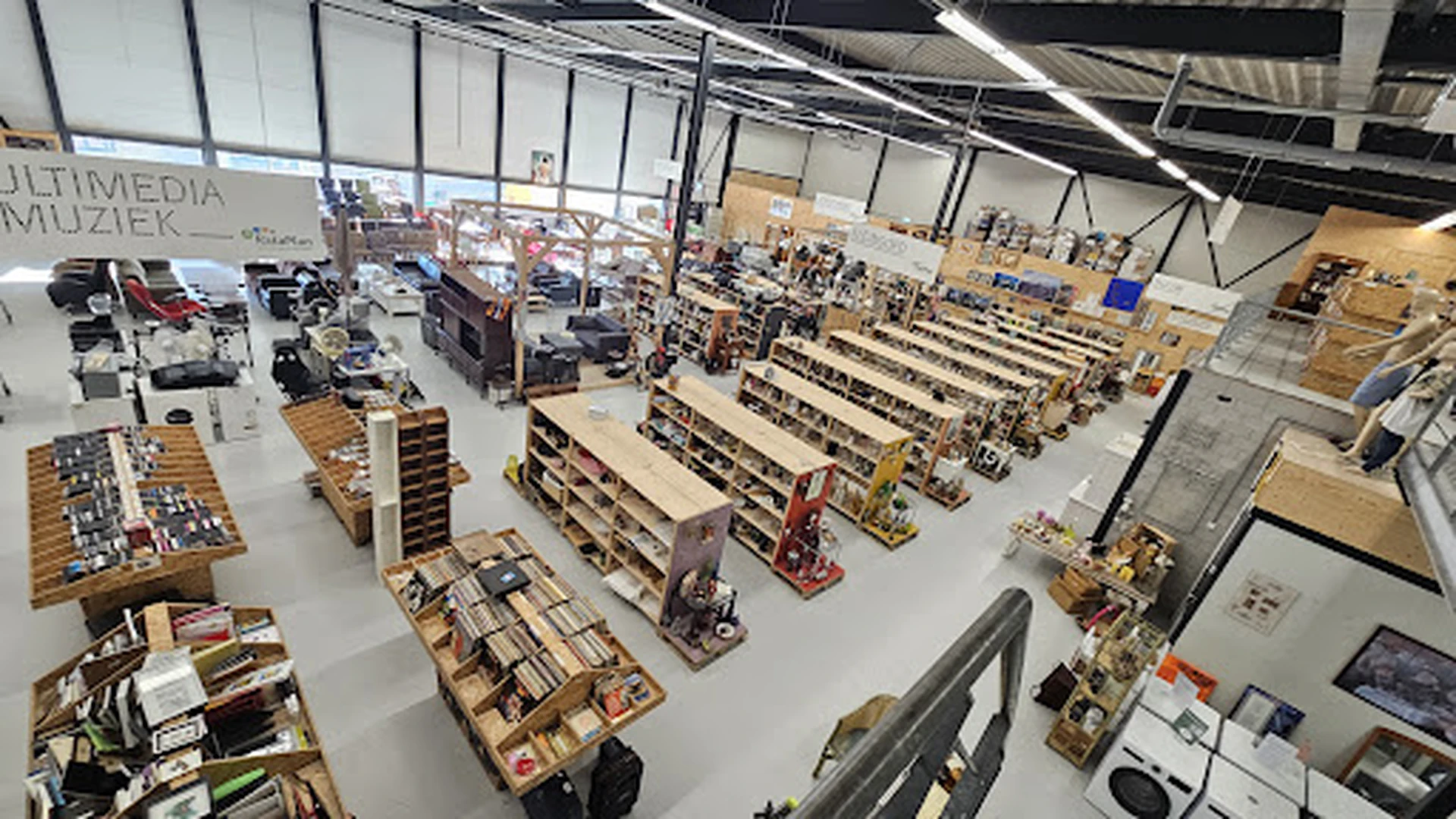 Grote ruim op gezette kringloopwinkel. Meneer bij kassa was wat nors
