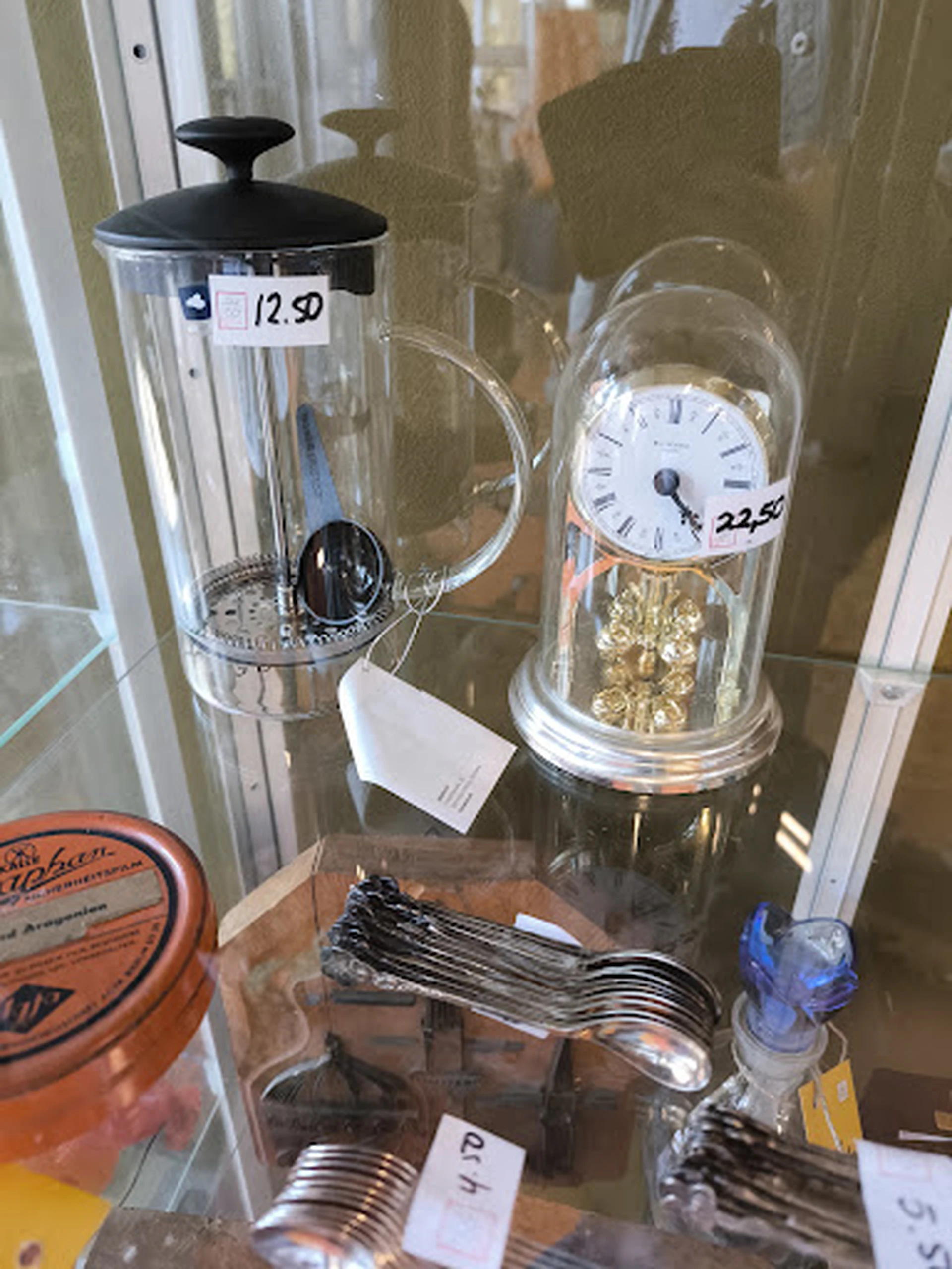 Deze winkel is gewoon ongelooflijk duur. Enkele voorbeelden hieronder. Ik vond een trui voor 6,50. Exact dezelfde heb ik vorig jaar gekocht tijdens de lente-uitverkoop bij de Kik voor 2€. Gloednieuw! Exact dezelfde! Een French press voor het zetten van thee en koffie, 12,50. Je kunt een nieuwe veel goedkoper kopen! Chinese plastic horloges, 22,50€. Vrienden, het lijkt erop dat jullie vergeten zijn dat dit een tweedehandswinkel is. Jullie kunnen beweren dat merkkleding niet 1€ kan kosten, maar als ik een french press nodig heb, maakt het me niet uit of het een merk is of niet. Als ik een gewone trui nodig heb en die bij jullie duurder is dan in een normale winkel, dan kom ik gewoon niet meer terug.