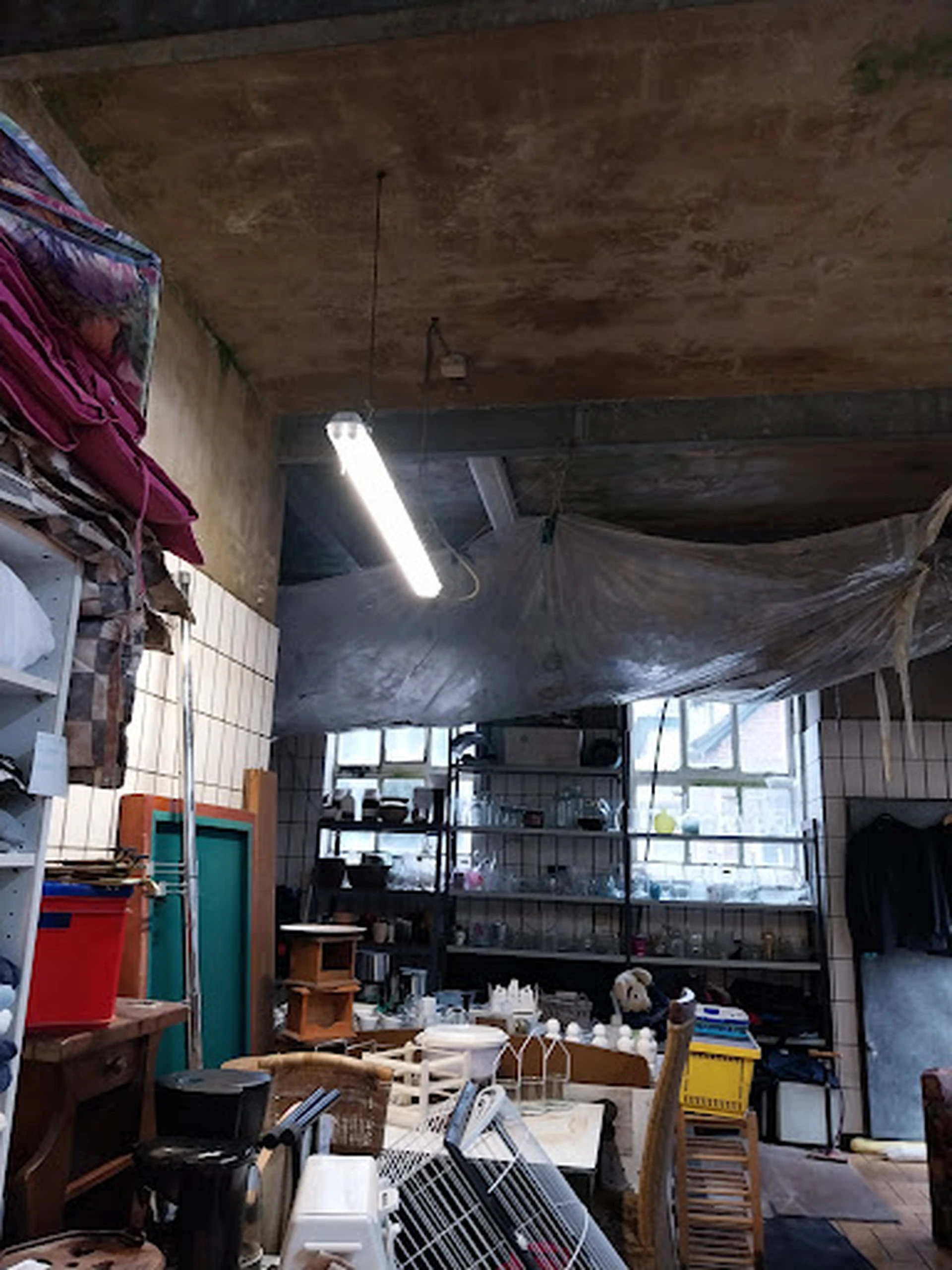 Leuke kringloop alleen denk ik dat het tijd word om plastic of golfplaten bovenop de hal achter te leggen/plaatsen zodat het regenwater niet naar binnenkomt. De boeken, plaatjes etc hebben er best van te lijden. (En het plafond gezien de plekken). Ik denk met wat opknappen dat het zo weer in orde is 👌👌