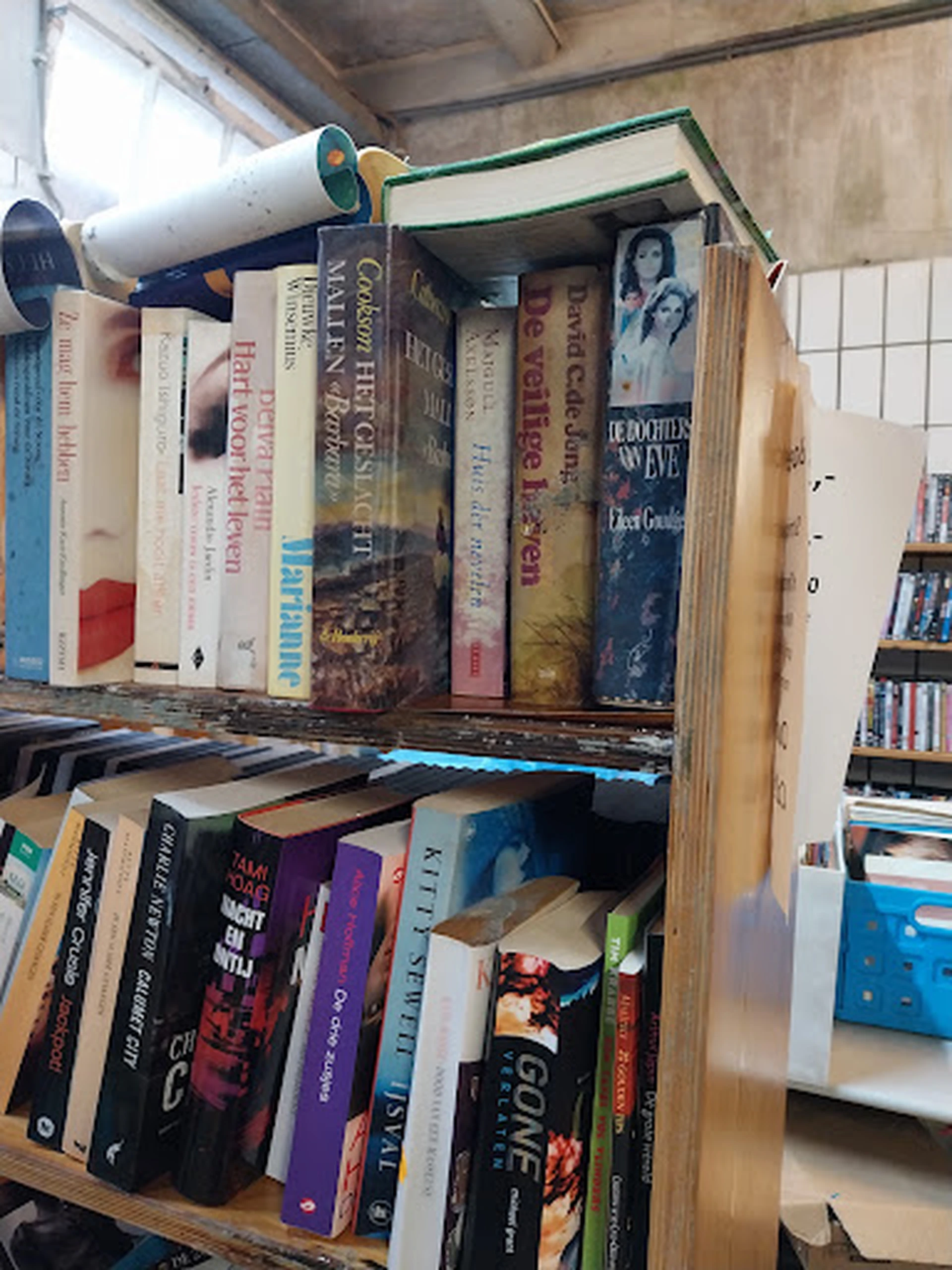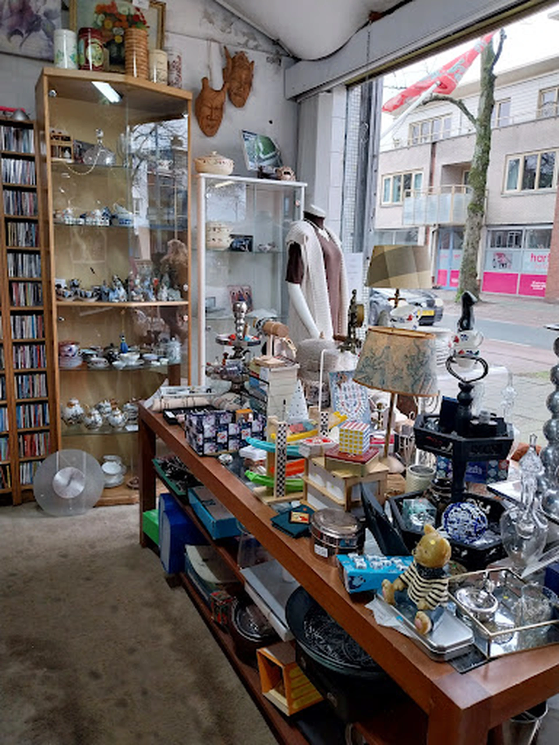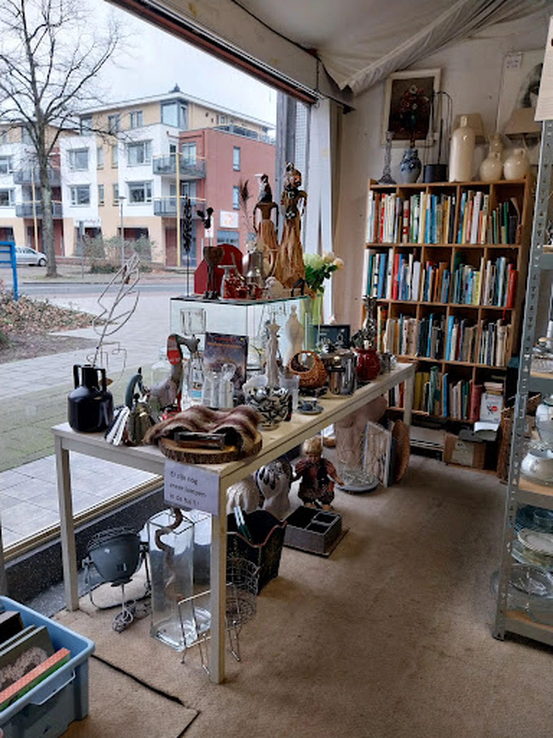 Bijzonder veel spullen die flink door elkaar staan in een propvolle winkel. Vriendelijke dame bij de kassa. De hal achter is een aanfluiting..... lekkages overal natte boeken en spullen. Gewoon een volgepropt oude slagerij hal. Sorry maar daar is het moelijk wat leuks te ontdekken.