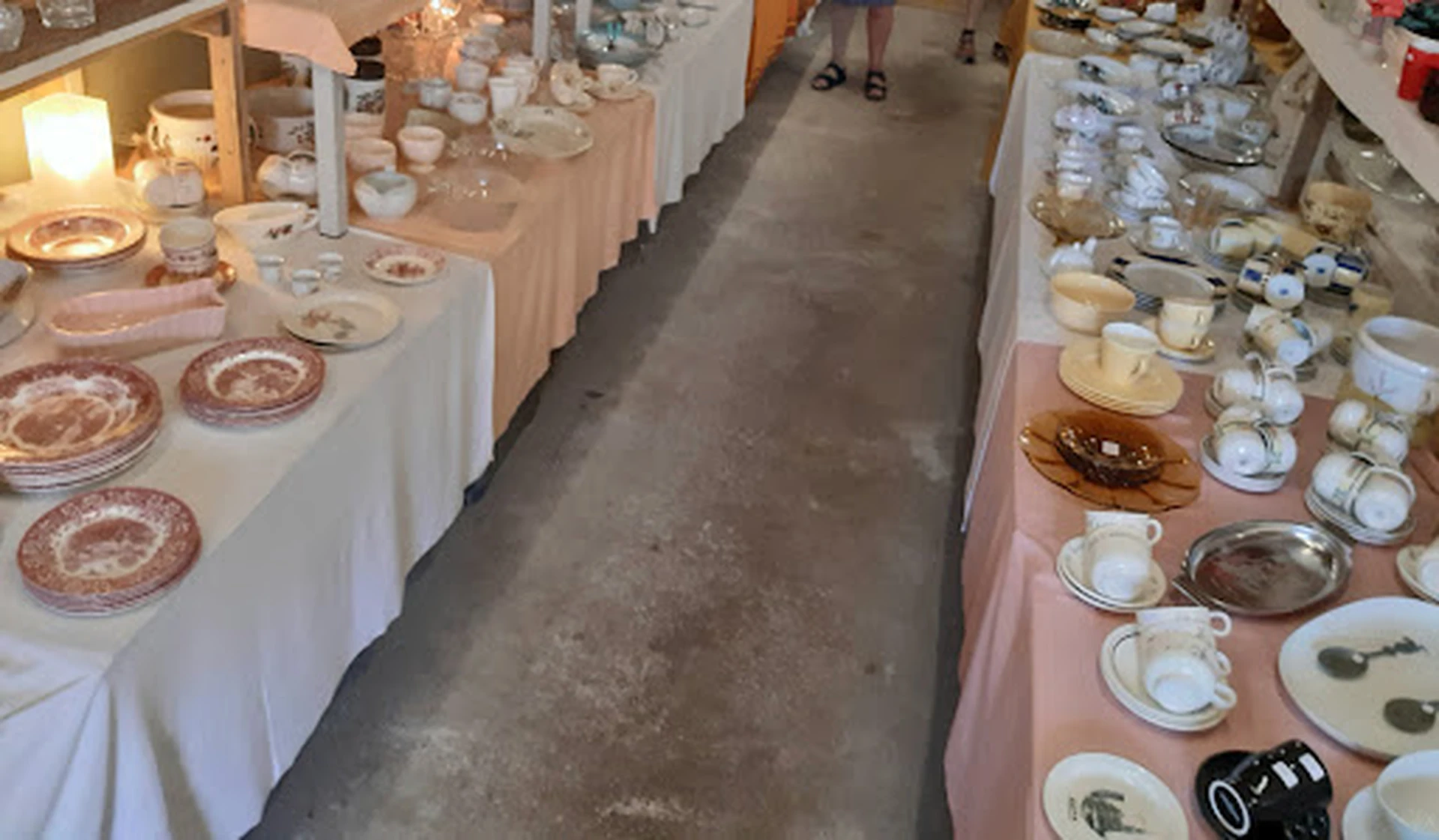 Weekly flea market (Mondays) that supports the preservation of the village church. Divided into two barns/halls. In the first there are four departments: In Department 1 (mainly) porcelain/glass and books (in the attic). Department 2 is equipped with technology and media. From old radios to electric can openers to CDs, power supplies, cables etc. to tools. Department 3 offers decoration, pictures, fabrics and also jewelry. Department 4 - hmm... Maybe most likely furniture, but not many. In the open barn opposite: Lots of small items (glasses, pots, household items, small furniture, some toys) Overall, a mixture of flea market and social department store - no antiques in the strict sense. The people are all relaxed and friendly, the prices are cheap (at least for the things I was interested in). Its worth it!