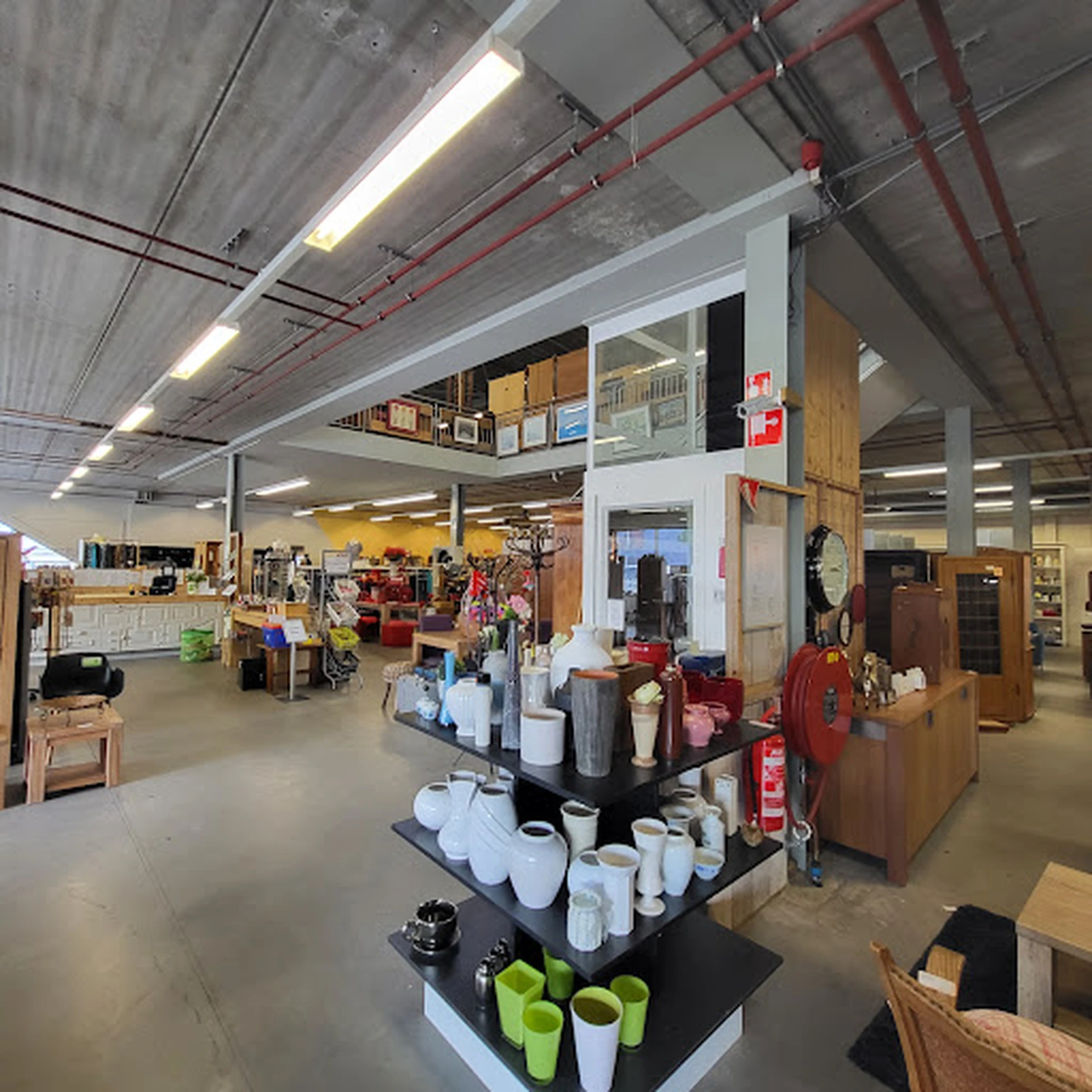 Grote kringloopwinkel. Proper, georganiseerd, bovenaan vrijveel meubelen. In industriepark.