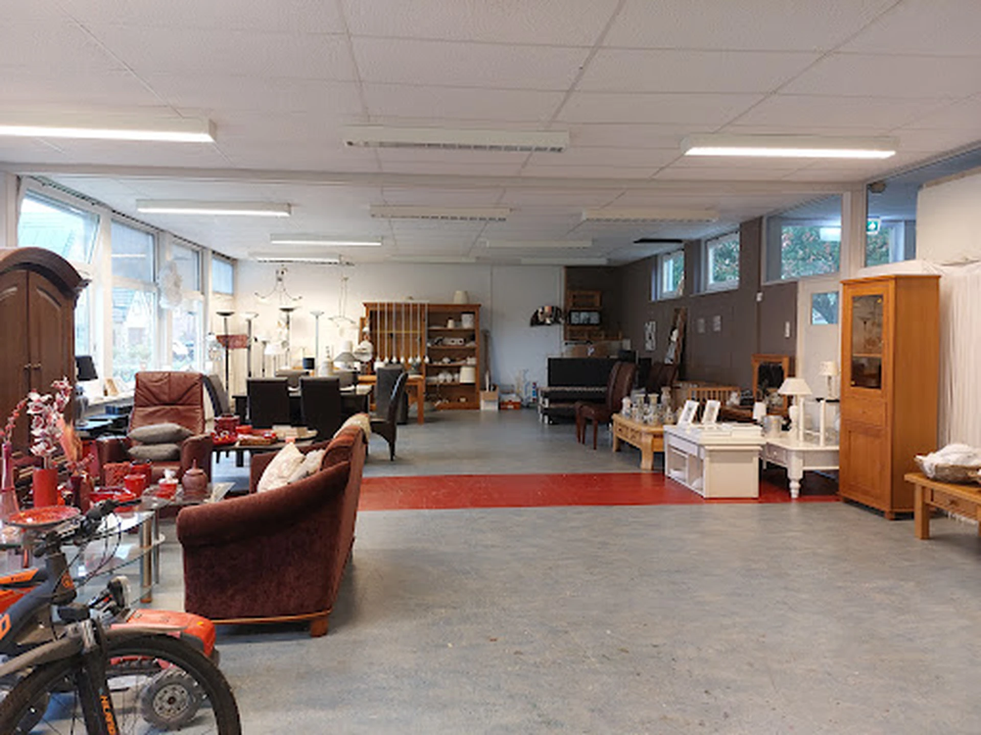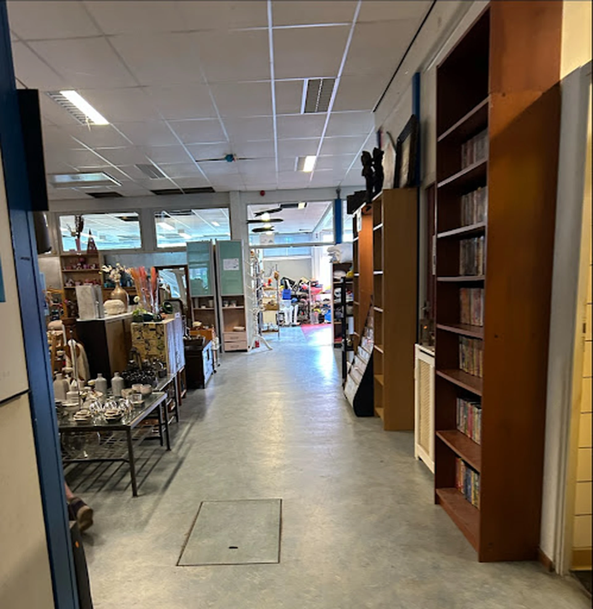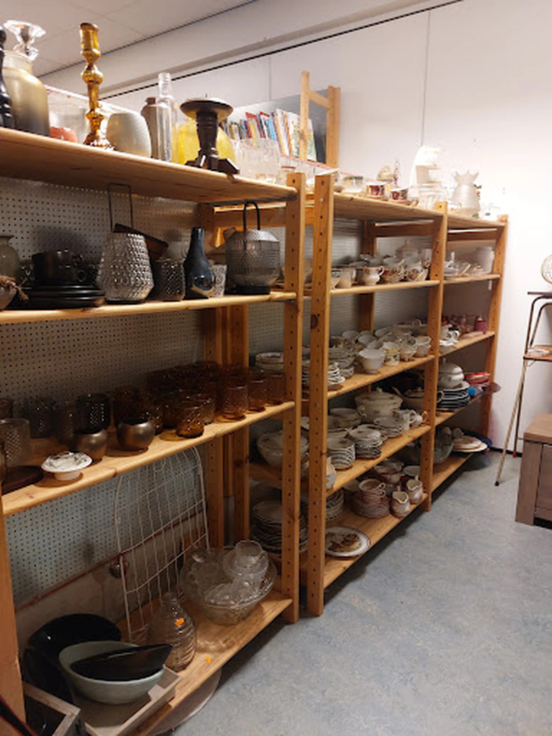 Drijf hier zeker een paar uur rond in deze grote, overzichtelijke winkel gevestigd in een voormalig schoolgebouw. Het aanbod is zeer ruim, van kleding, boeken en een grote serviesafdeling tot meubels en elektronica. De prijzen zijn opvallend laag, met name voor vazen en huisraad, wat het een echte kringloopervaring maakt. Een dikkere plus is de rolstoelvriendelijkheid en het gratis toilet. Een minpunt zijn de wat onveilig voelende paskamers. De sfeer is vriendelijk en de winkel ondersteunt een goed doel, inclusief een supermarkt voor minima.