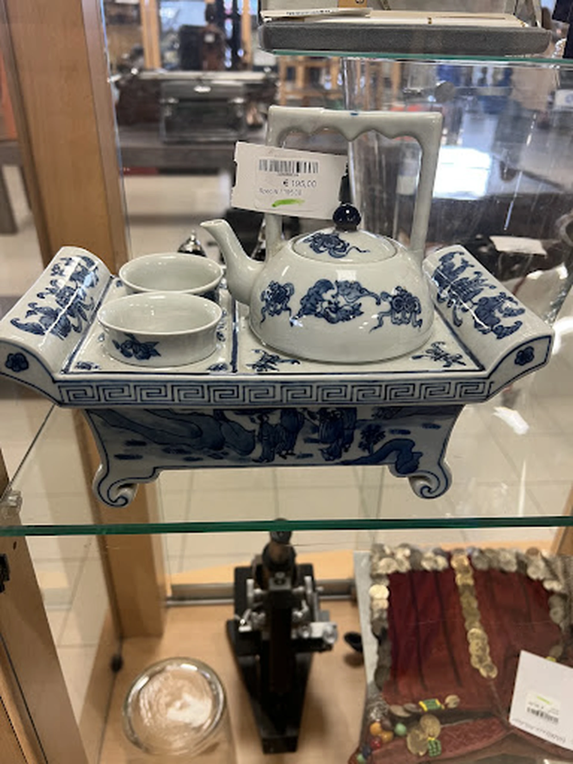 Veel te duur In de vitrine een Japans theepotje met cups in houdertje van porselein bijna 200 euro ?? Waar halen ze die prijzen vandaan Japans en Chinees porselein is allang niet meer zo duur!!!! Ook andere dingen veel te duur onder andere klokken !!! Belachelijk